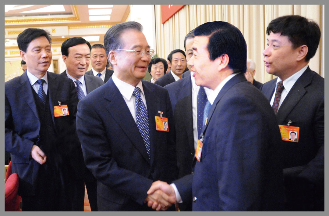 時任中央政治局常委、國務(wù)院總理溫家寶與楊建忠董事長親切握手